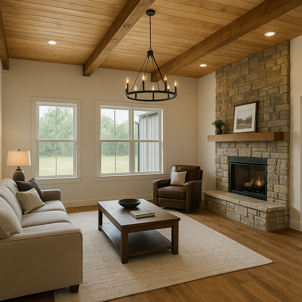 We designed this barndominium for a growing family that wanted wide-open living spaces, a big kitchen for hosting, and a few peaceful corners to escape to. With rustic-modern finishes, 2,300 square feet, and a layout that flows effortlessly, it’s one of those homes that just feels right from the second you walk in.